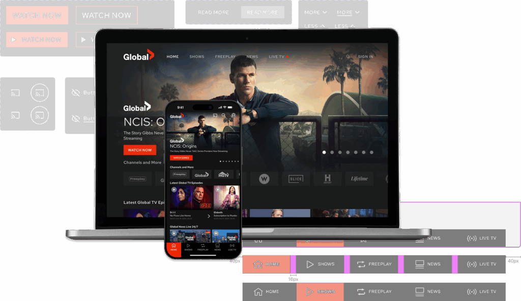 The existing design system, which was maintained in Sketch, was becoming increasingly difficult to manage as the Global TV product expanded across desktop, mobile, and TV platforms. Components lacked consistency and weren’t easily reusable, making it difficult to move quickly on new features or UI iterations.